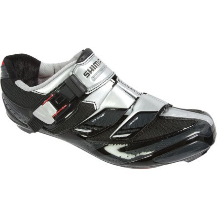 Rotation after rotation up hills and down descents requires endurance, concentration and desire. Selecting gear to meet your elite racing-level demands can be frustrating. Look no more, the Shimano SH-R191 Racing Shoes can not only meet those demands, but exceed them.The SH-R191 are an improved follow-up from last year's model with an even lighter construction thanks to the 3D moisture control mesh upper that is outlined by supple stretch resistant synthetic leather, giving you support and breathability. The carbon-fiber composite sole also detracts from the poundage while allowing peak power transfer. For ultimate support, a metal fiber knitted lining reduces heel-slipping to keep you in place while dual density, reinforced insoles offer optimal biomechanical backing. Topping off these elite racing shoes are oversized micro-adjust buckle and dual off-set straps to customize the tightness to your liking. Carbon-fiber composite sole Over-sized micro-adjust buckle and dual off-set straps Stretch-resistant synthetic leather and 3D moisture control mesh Anti-slip heel lining knitted with metal fiber Reinforced, dual density insole and enhanced profile for biomechanical support