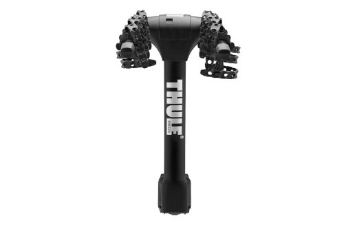 The Thule Vertex 9030 5-bike hitch mount bike carrier transports up to five bicycles securely at the rear of vehicles, while allowing access to rear doors by leaning the unit back when not loaded. The carrier is compatible only with 2" hitch receivers. Additional features include: an arch design for easier bike loading and carrying performance, increased mast height, Thule Hold Fast cradles and anti-sway cages, the ability to fold arms down flat, bike and rack security from theft with locks (sold separately), and an integrated carrying handle.