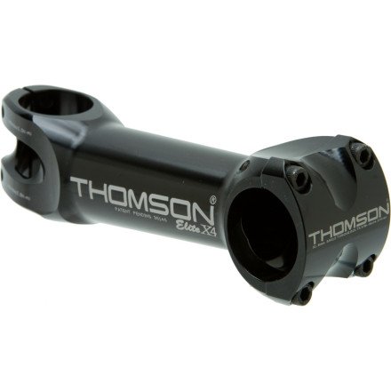 The Thomson X4 Stem is stronger and lighter than their older Elite stem. A good part of this weight savings comes from the change in design. Where the Elite used an internal wedge clamp, this X4 relies on a more traditional split clamp for the steerer interface. While it meant losing the knee-saving shape on the Elite, the clamp bolts are pretty minimal given the sculpted design. The Thomson X4 Stem is CNC machined from 7000 series aluminum alloy. It has a 31.8mm clamp diameter. It's available in Black or Silver and with a zero (90) or ten (100) degree rise.